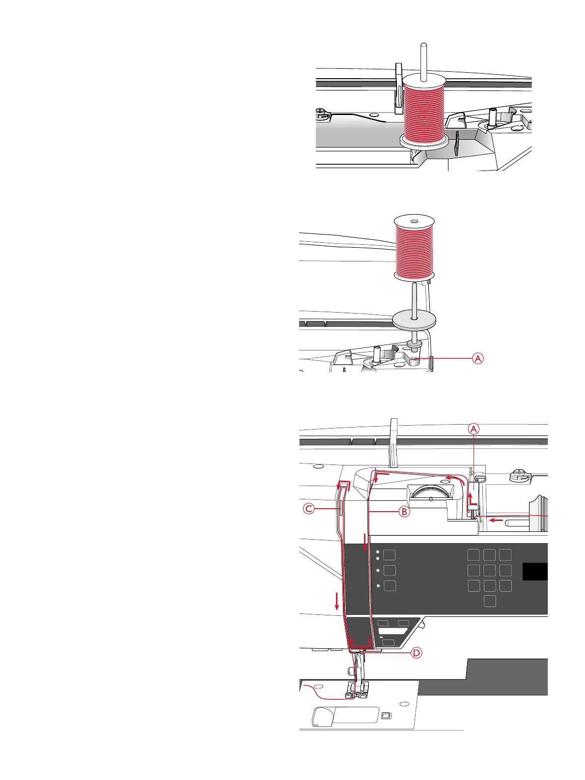 5. Rijg de draad omlaag door de rechter inrijggleuf en dan