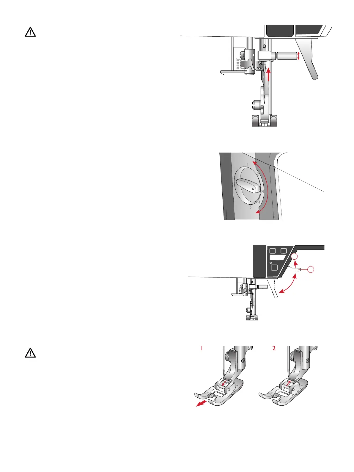 de hoogste stand is. Trek de naaivoet naar u toe.