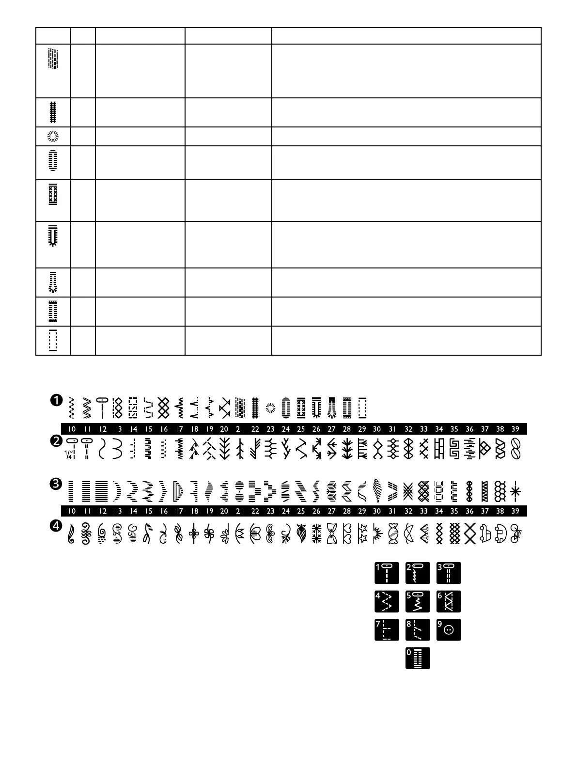 De steken 0-9 zijn in alle vier de stekenmenu's hetzelfde.