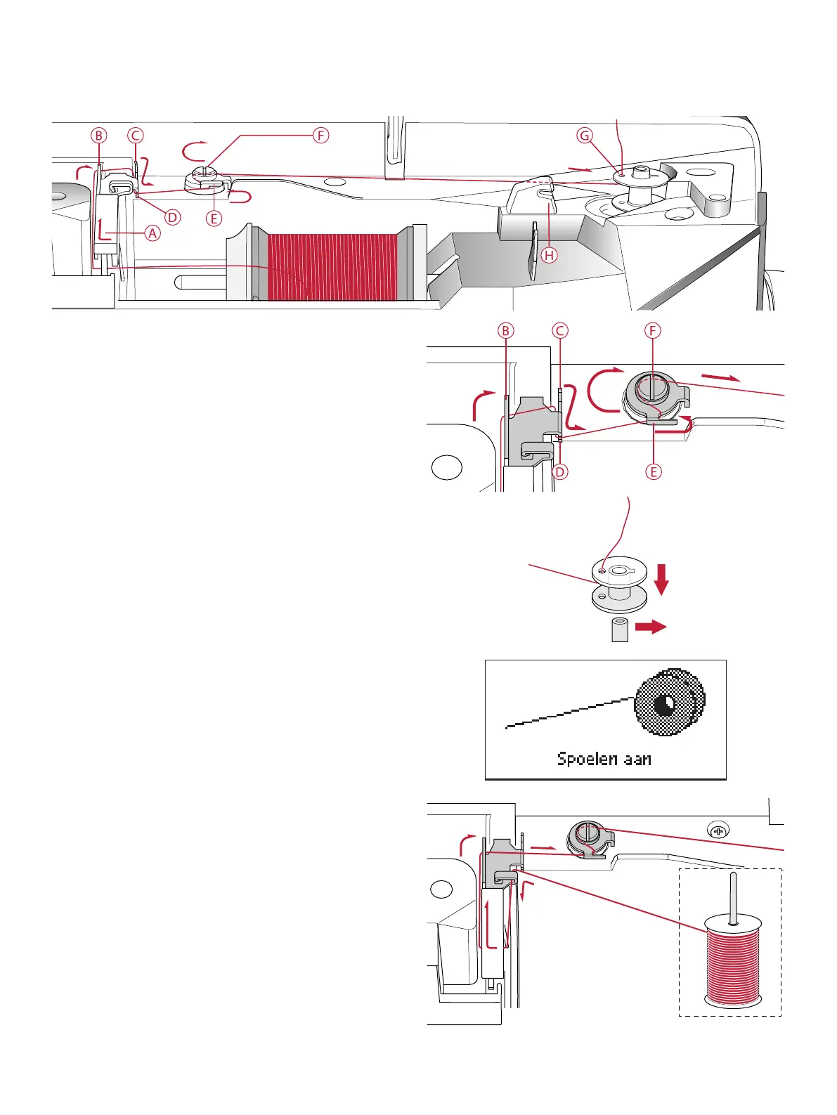 de spoel en snijd de draad af met de onderdraadafsnijder