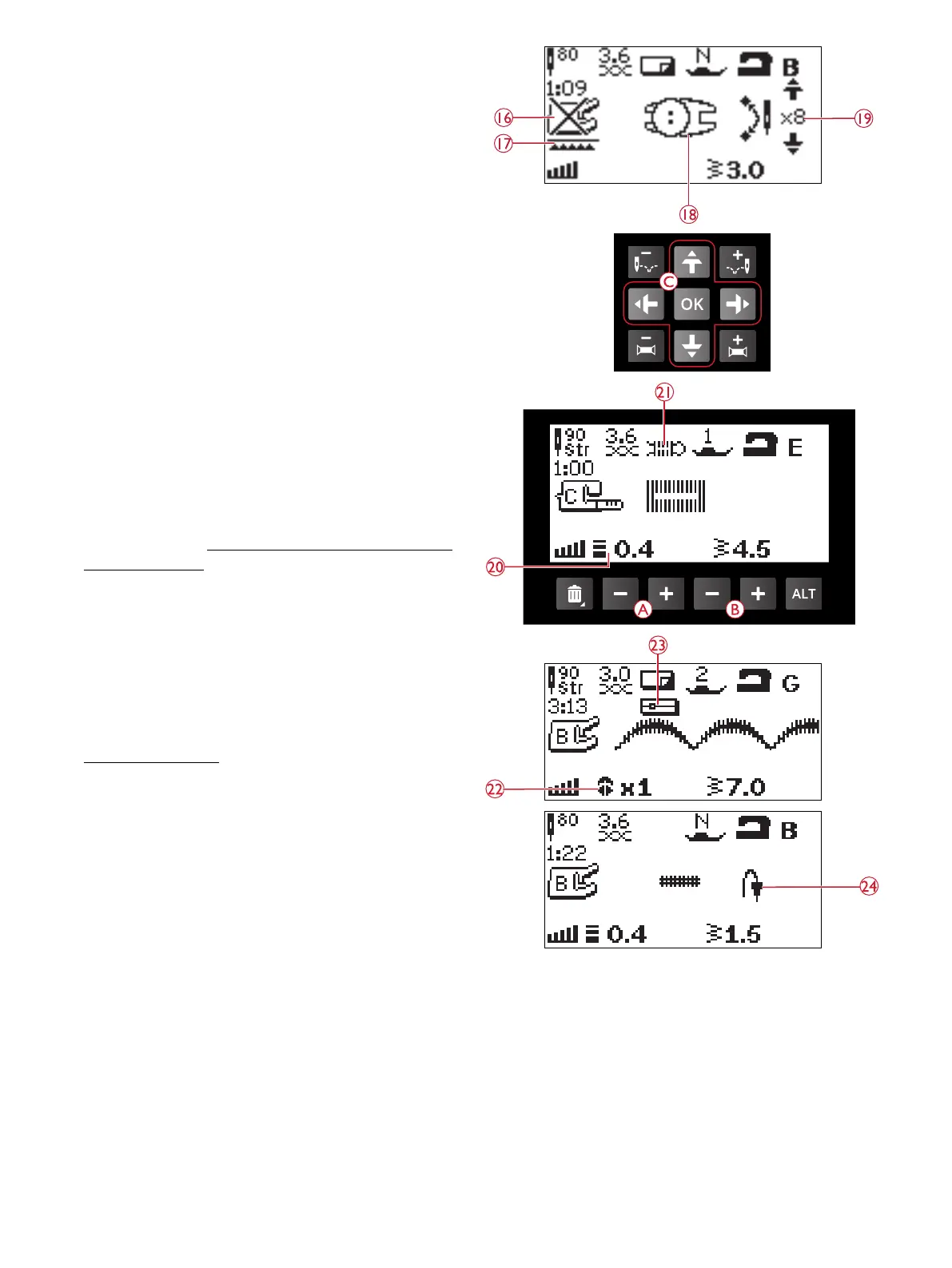 19. Stel het aantal op de knoop te naaien steken in met de