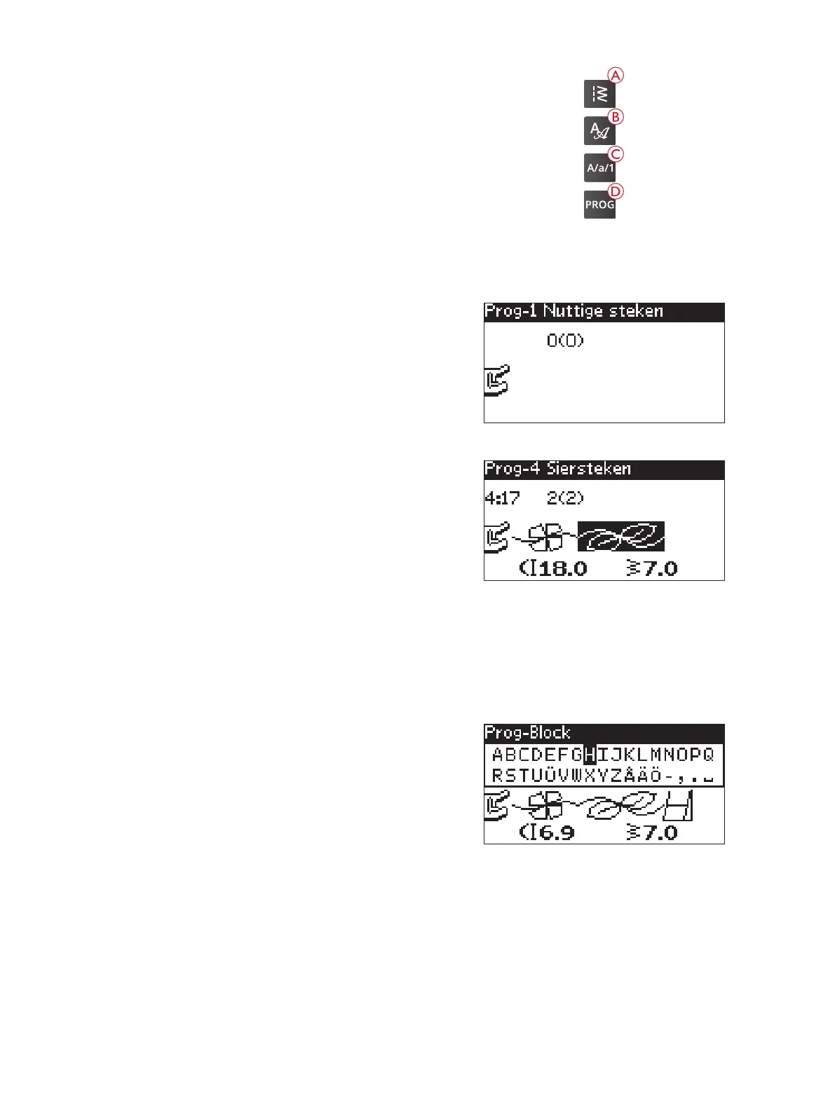 van het grafische display is het nummer van de geselecteerde steek. Boven