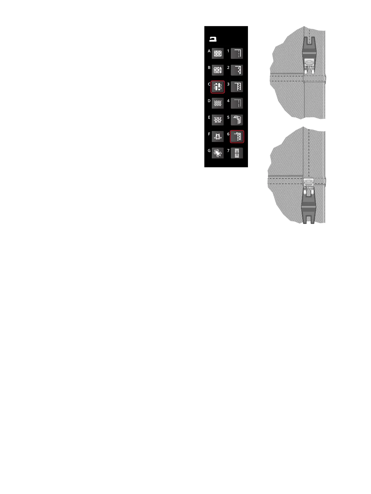 Gebruik: Naaivoet B zoals aanbevolen en jeansnaald dikte