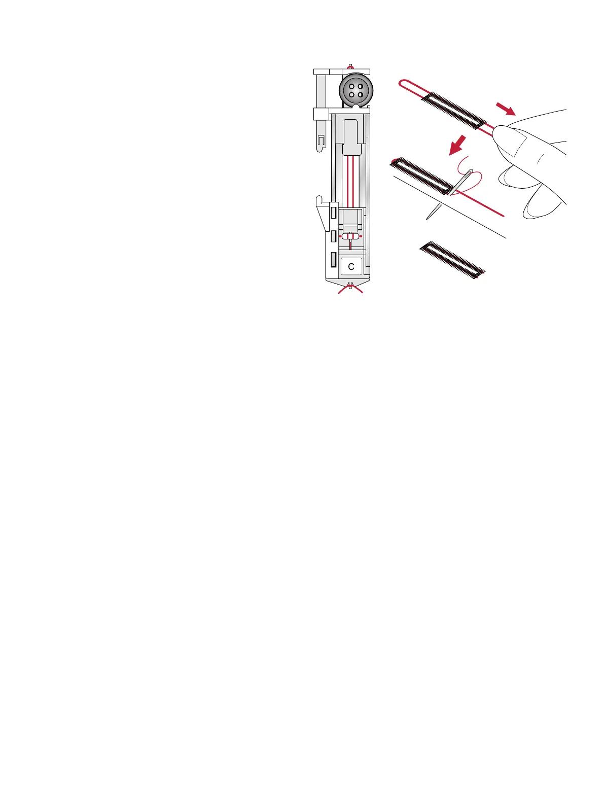 4. Laat de draad kruisen voor de naald en rijg de uiteinden