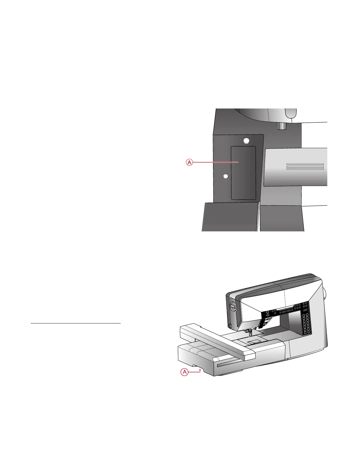 3. Druk op de knop links, onder de borduureenheid (A) en
