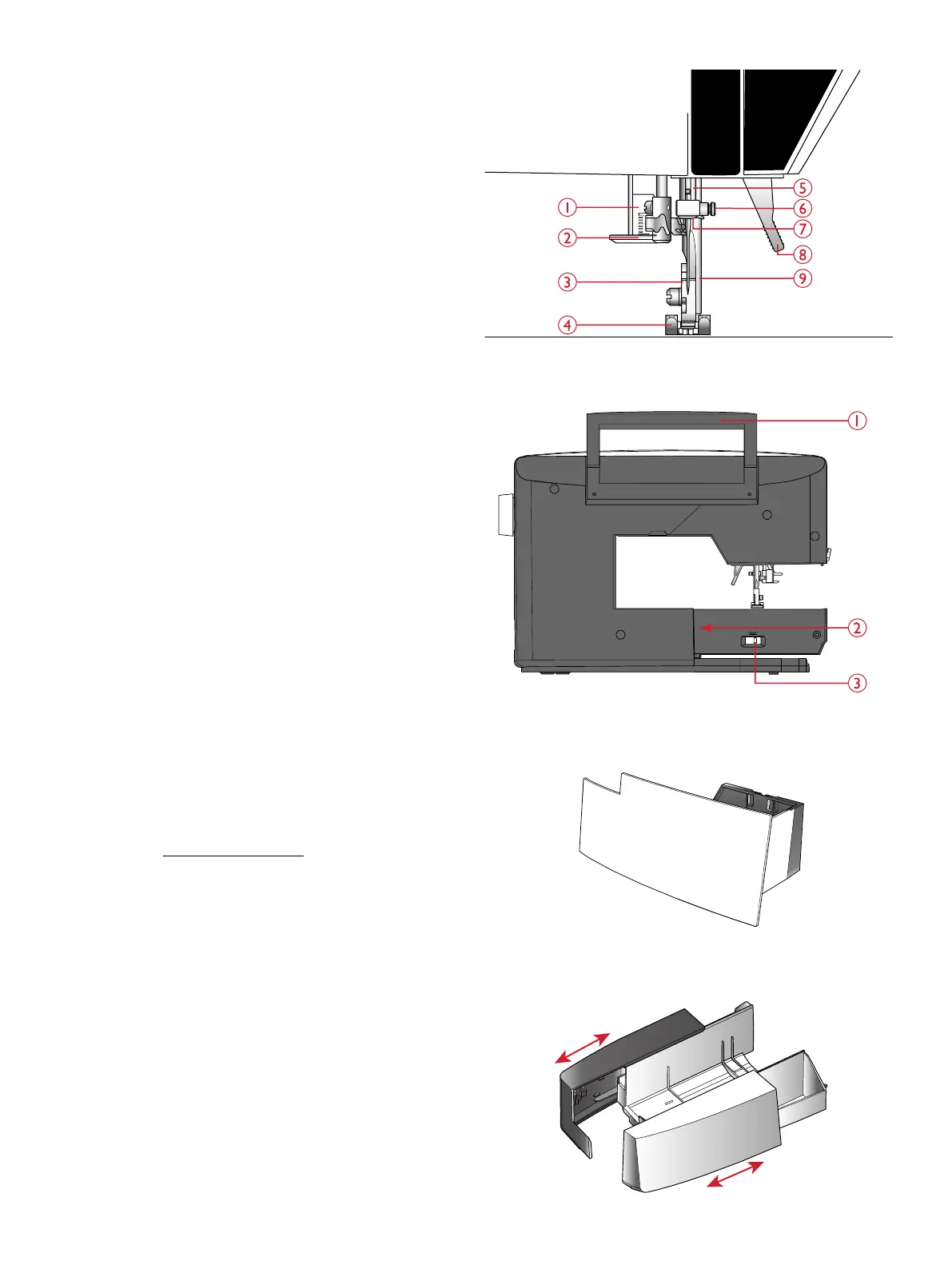 In de opbergdoos kunnen het voetpedaal, het snoer en alle