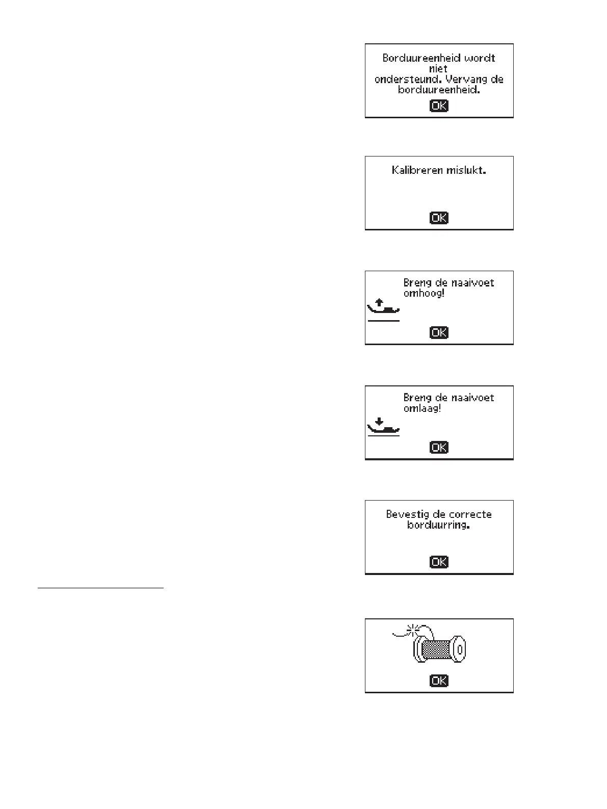 staat, zal de machine niet borduren. Vervang de borduurring