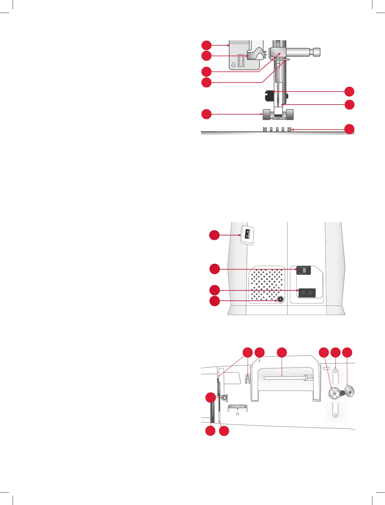 7. Naaivoethouder — Hier is de naaivoet aan bevestigd.