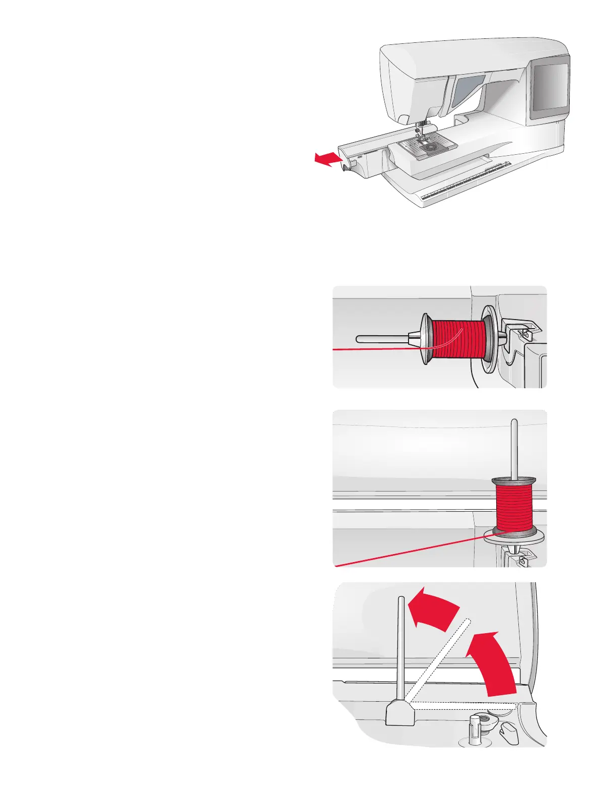 Lift the auxiliary spool pin up and to the left. Slide on the large