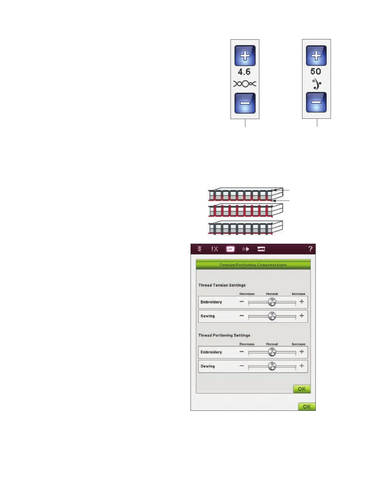 SET Menu, the symbol in the Thread Tension/Thread Portioning