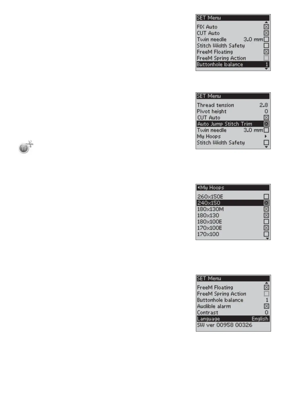 SET Menu, Embroidery Mode