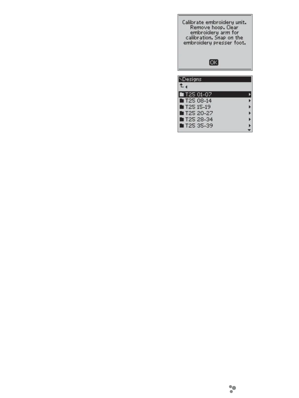 clear the embroidery area for calibration. Press OK to