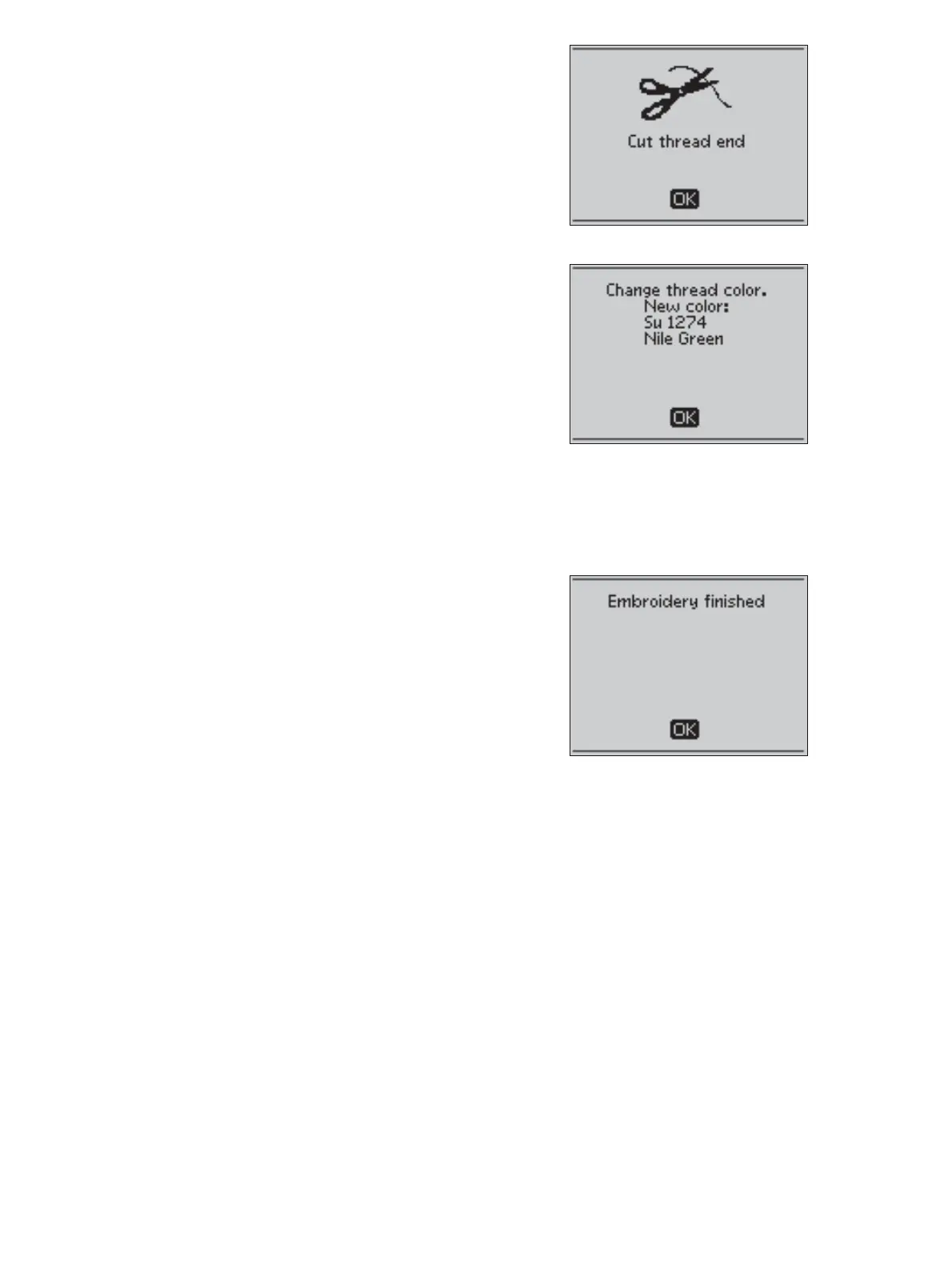 automatically. The needle and bobbin thread are cut.