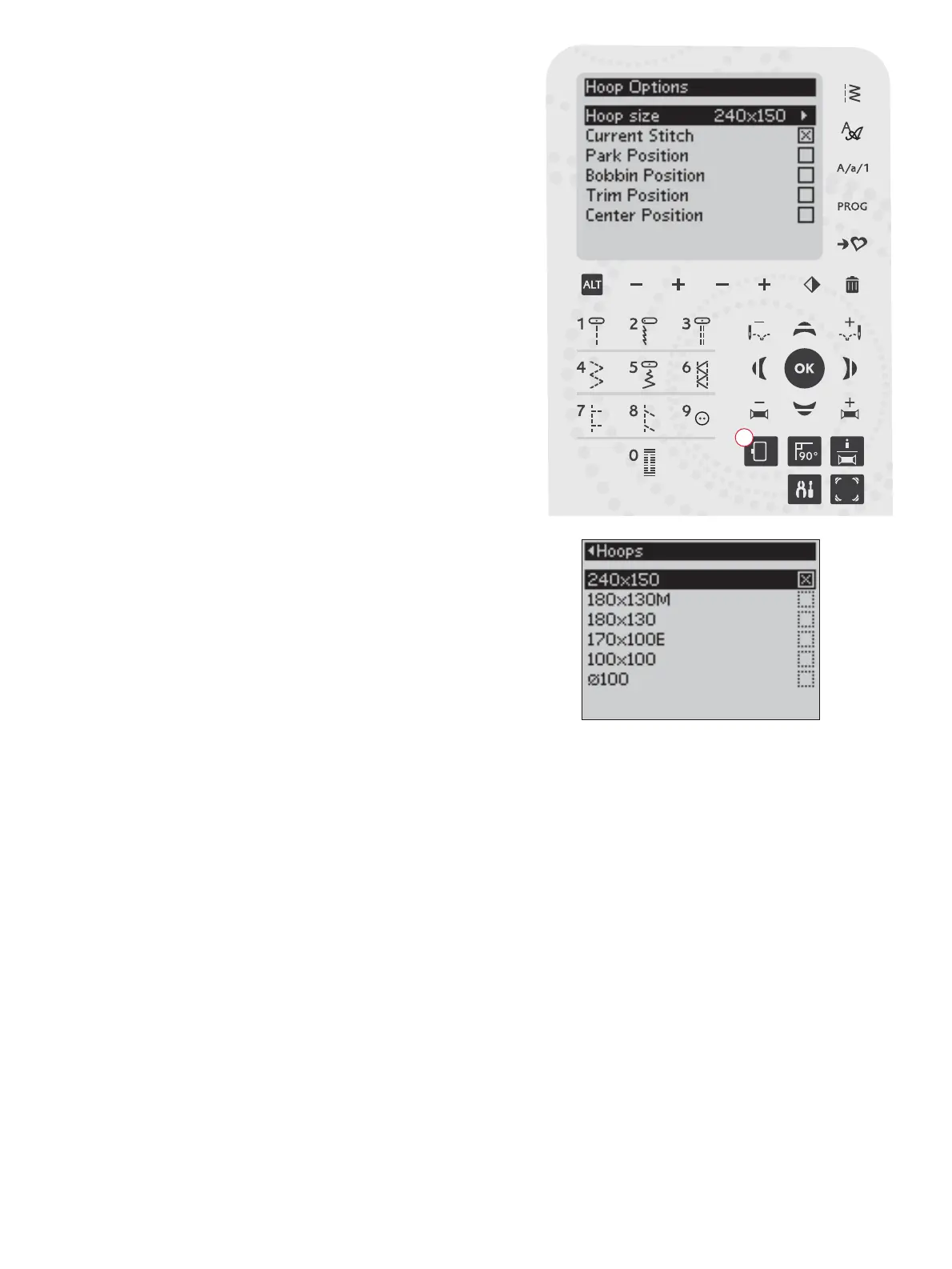 pressing the OK button. Close the Hoop Options Menu by pressing