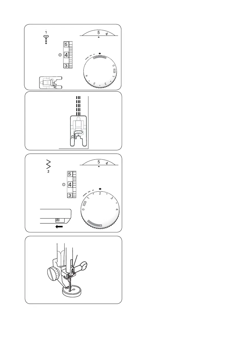 steken. Draai het steekbreedtewieltje op 0