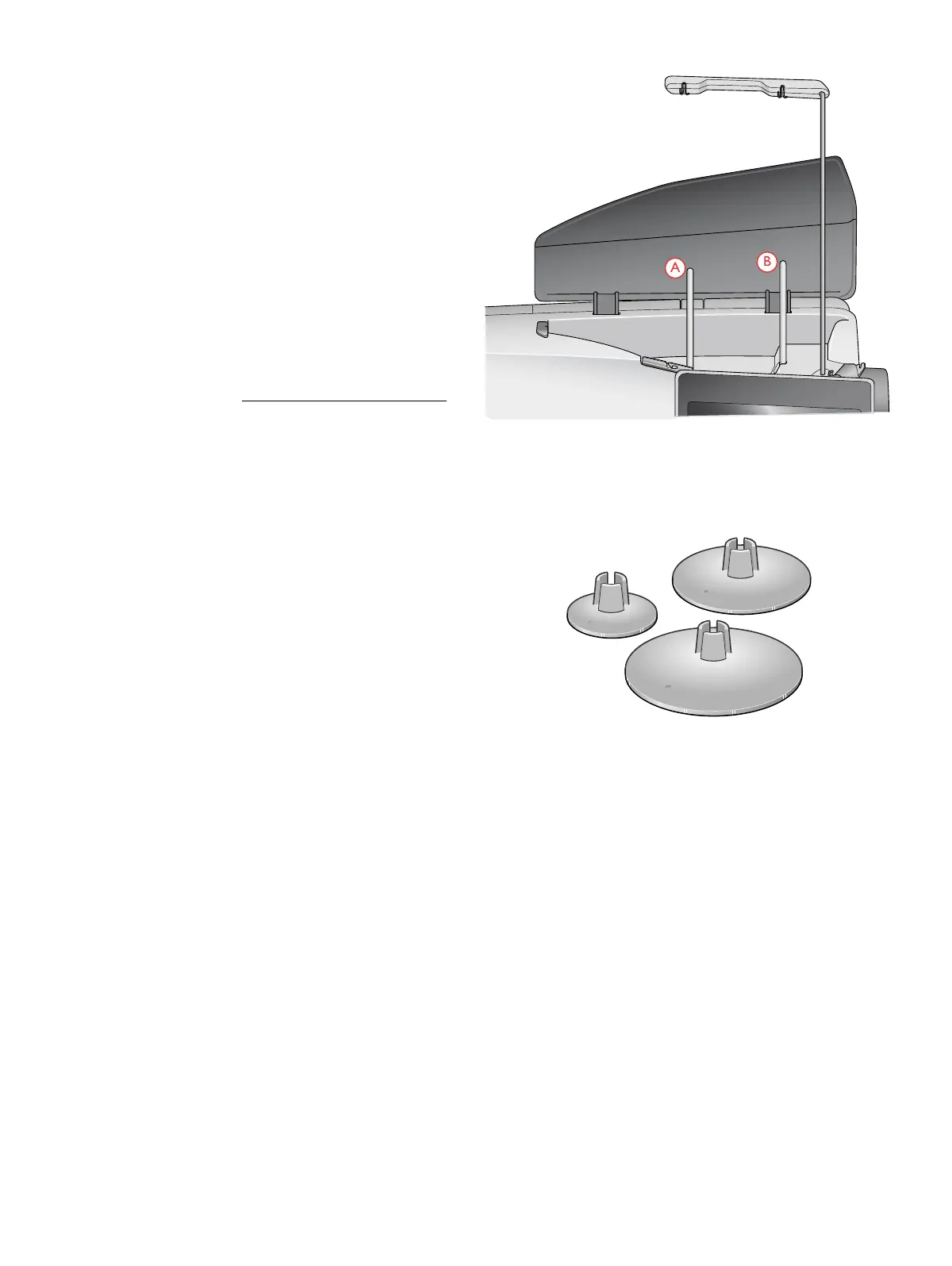 De extra garenpen (B) wordt gebruikt wanneer u een spoel