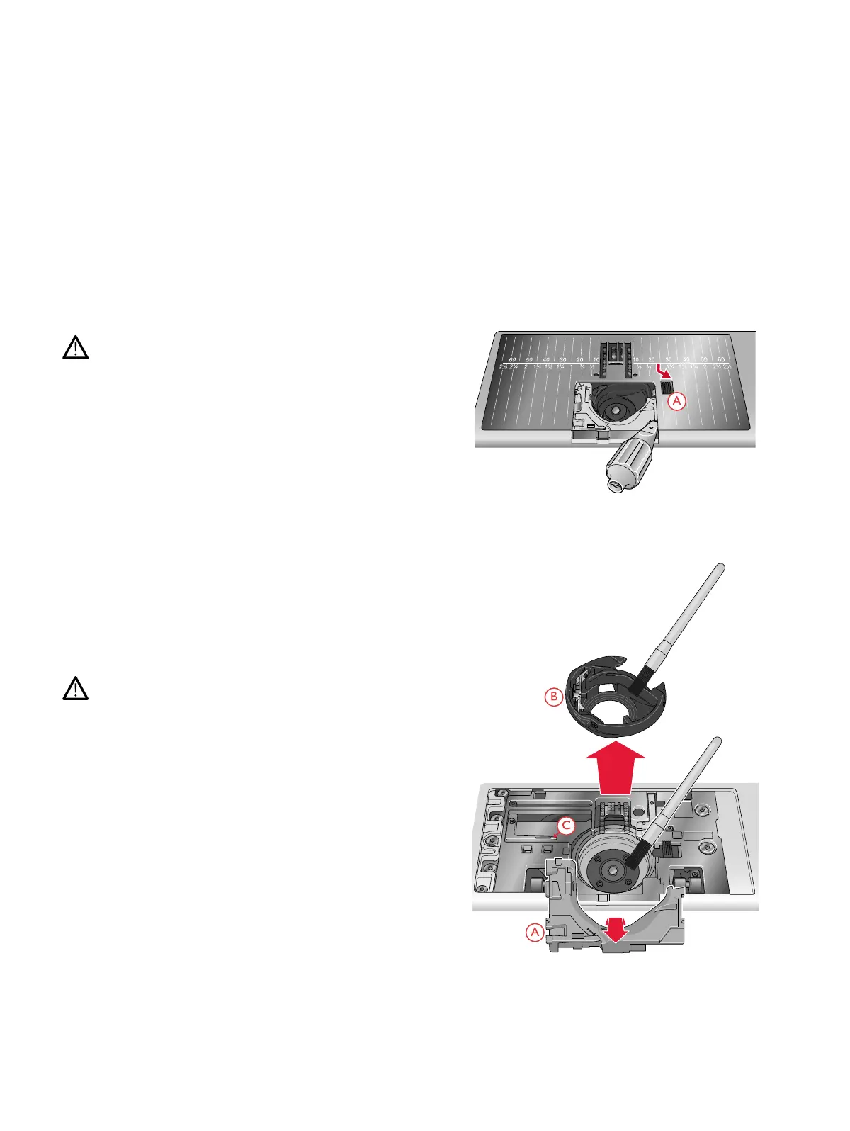 Note: Verwijder regelmatig stof en draden uit het spoelhuisgedeelte.