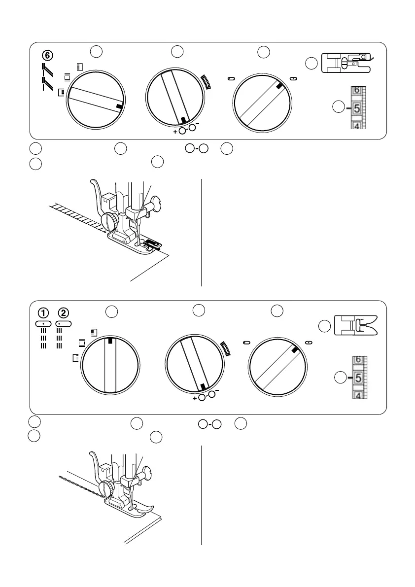 Stitch selector: 6 Stitch length: Stitch width: 5