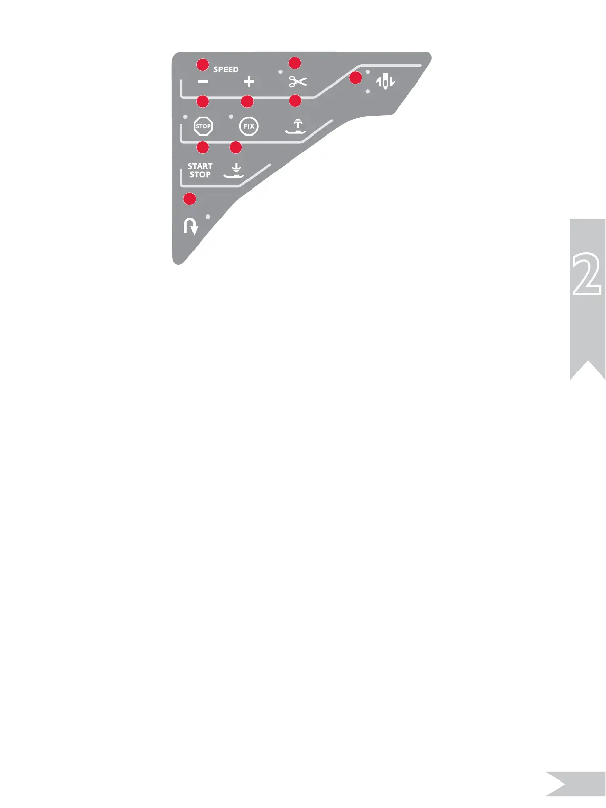 naaimachine vooruit. De LED naast de toets brandt wanneer