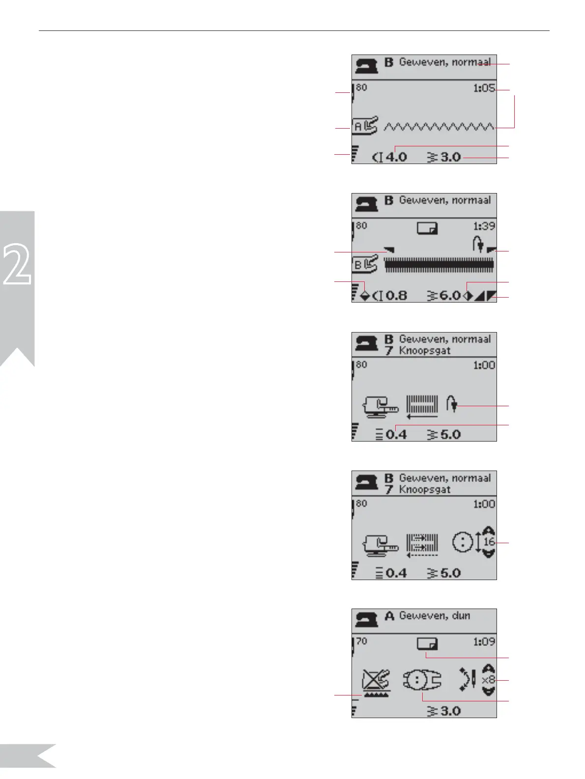 4. Steekbreedte. Verklein of vergroot de steekbreedte door op de