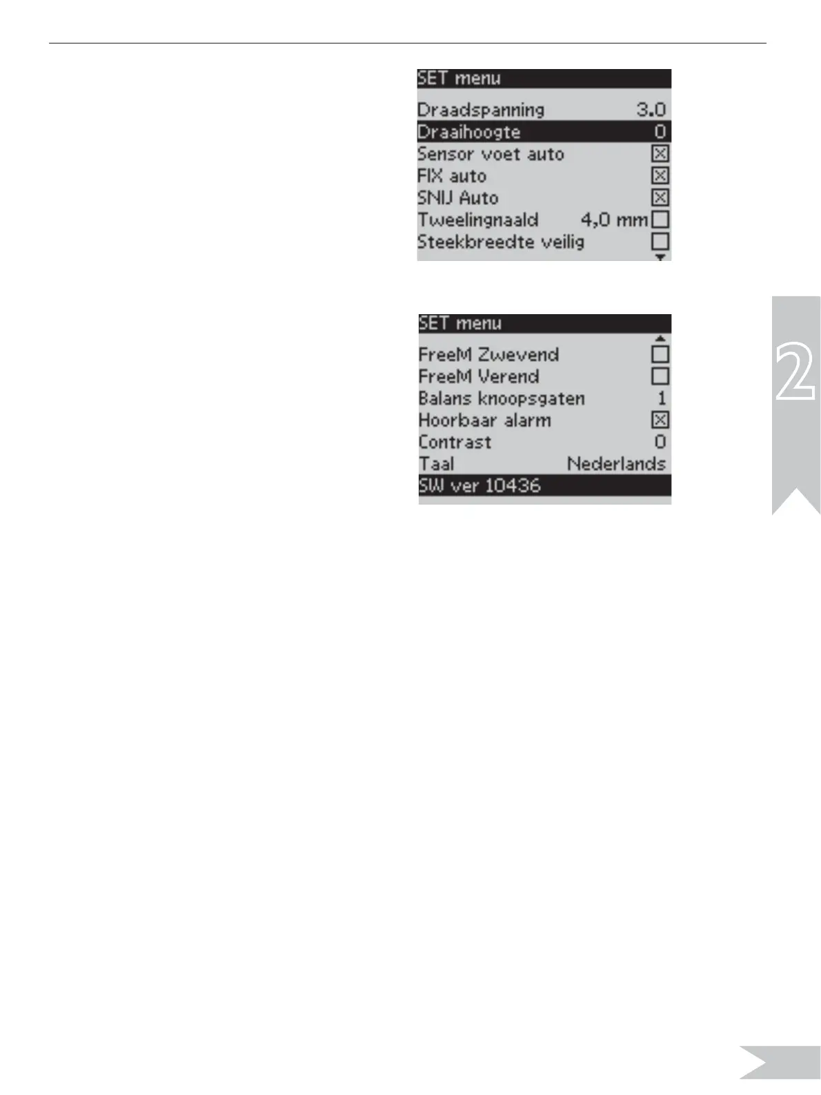 draaipositie van de naaivoet instellen. De draaihoogte kan worden