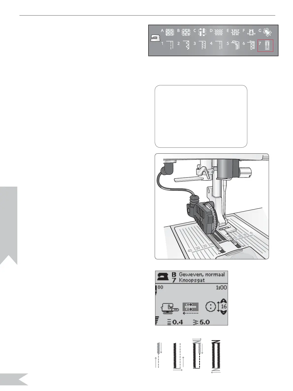 totdat het knoopsgat klaar is. De machine stopt automatisch