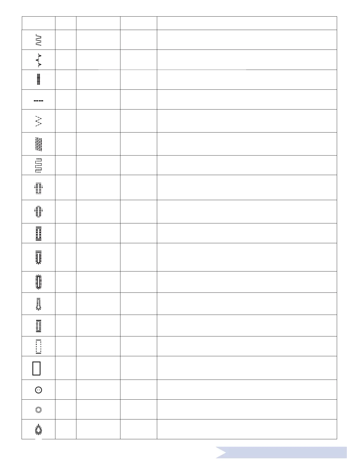 24 Driestaps-zigzag J Voor afwerken, verstellen, naaien van lapjes en elastiek. Geschikt voor dunne en normale stoffen.