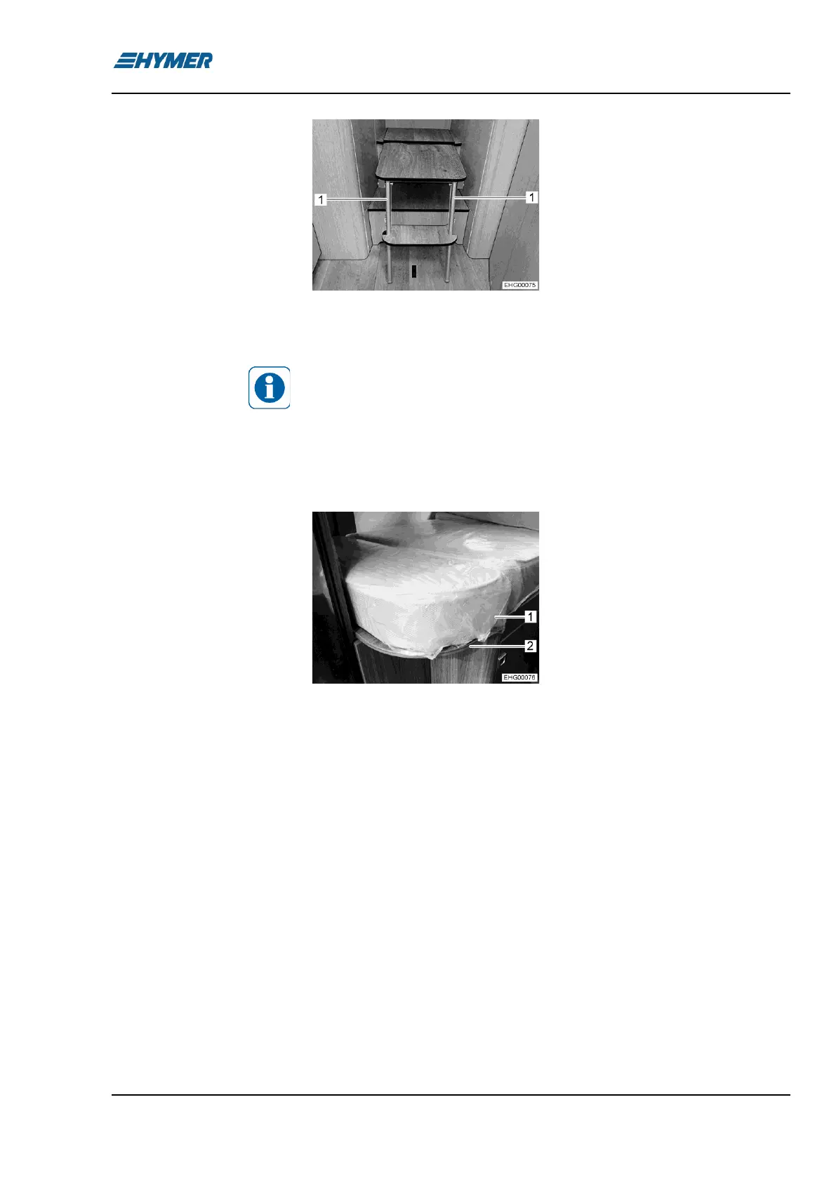 ◼ Place the additional cushion (Fig. 119,1) on the shelf (Fig. 119,2) above