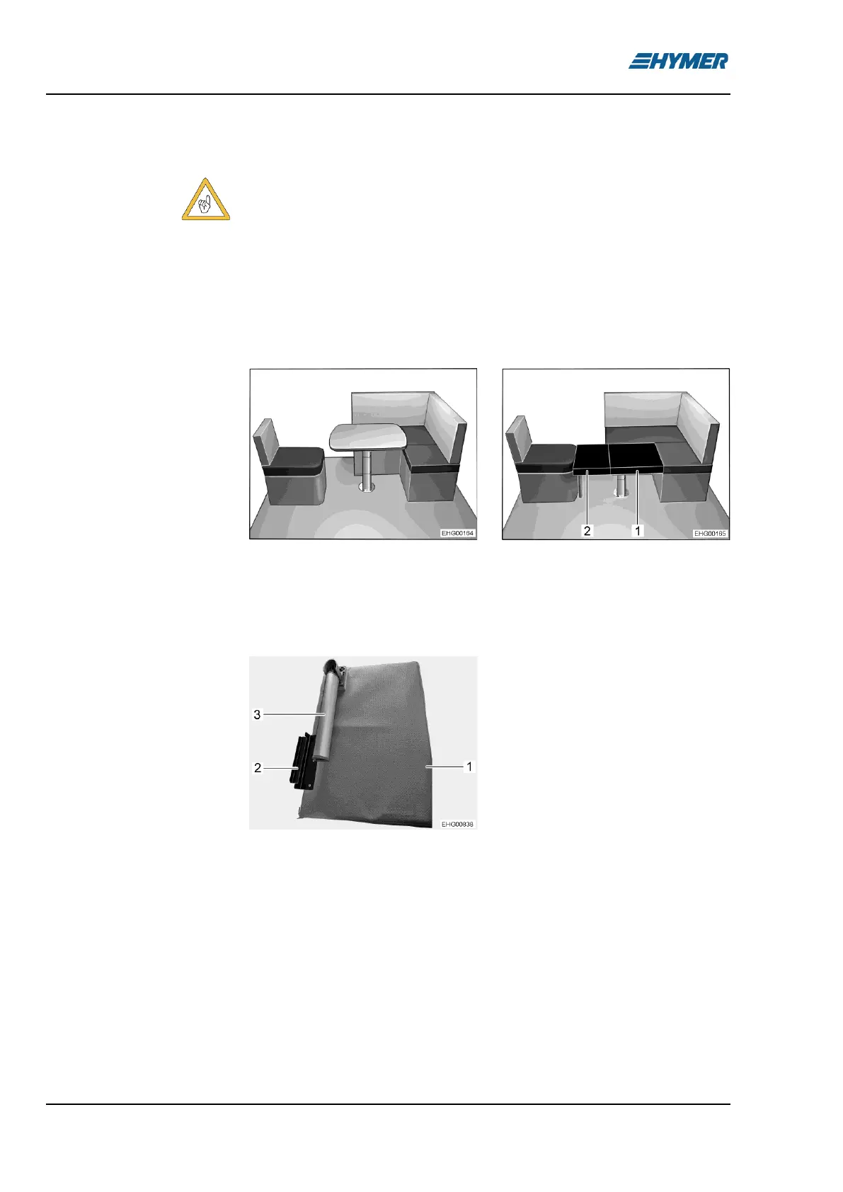 ◼ Place the second additional cushion (Fig. 121,1) on the table top.