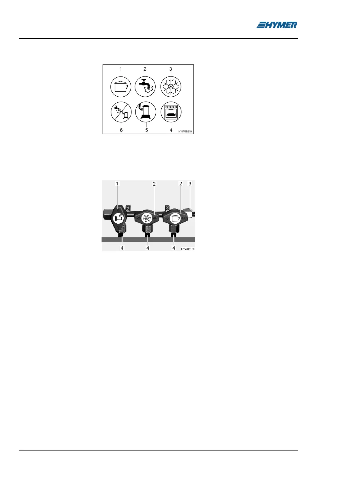 A gas isolator tap (Fig. 126) for every gas device is built into the vehicle. The