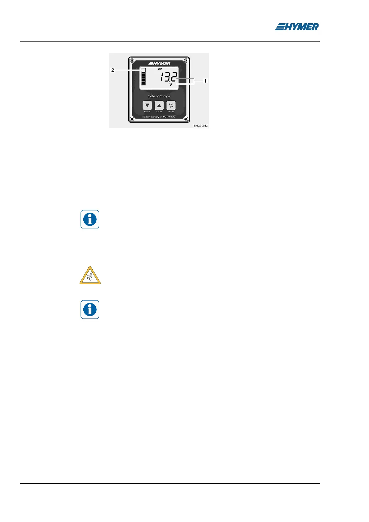◼ If the display is showing the SoC value: press button (Fig. 140,4) or but-
