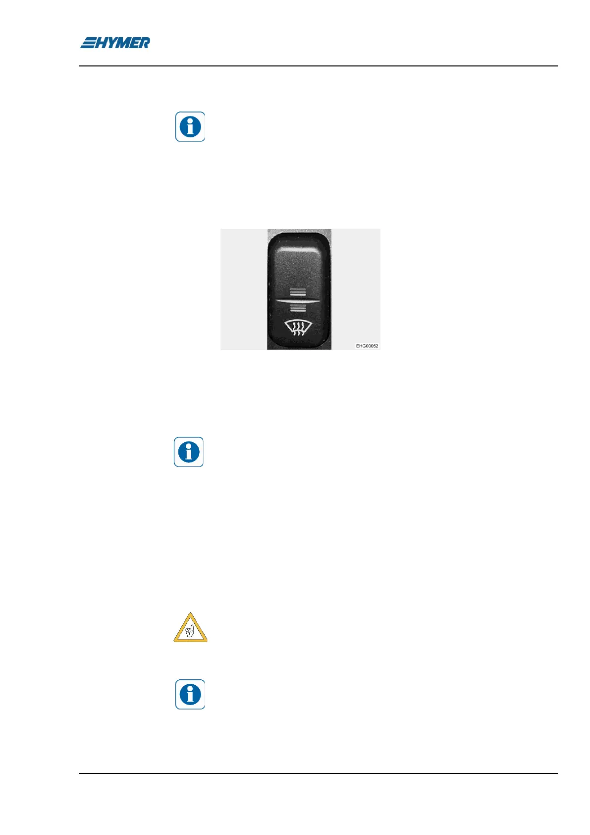 The windscreen heater is used to dehumidify a misted windscreen and to