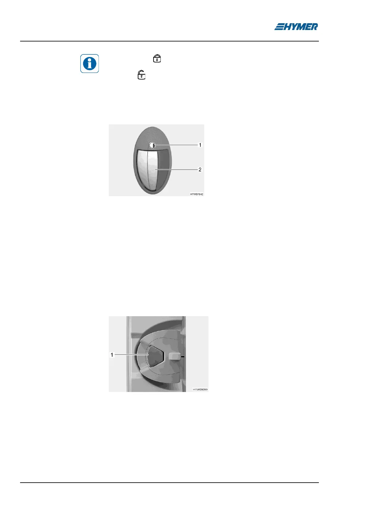 ◼ Insert the key in the locking cylinder (Fig. 53,1) and turn it in a clockwise