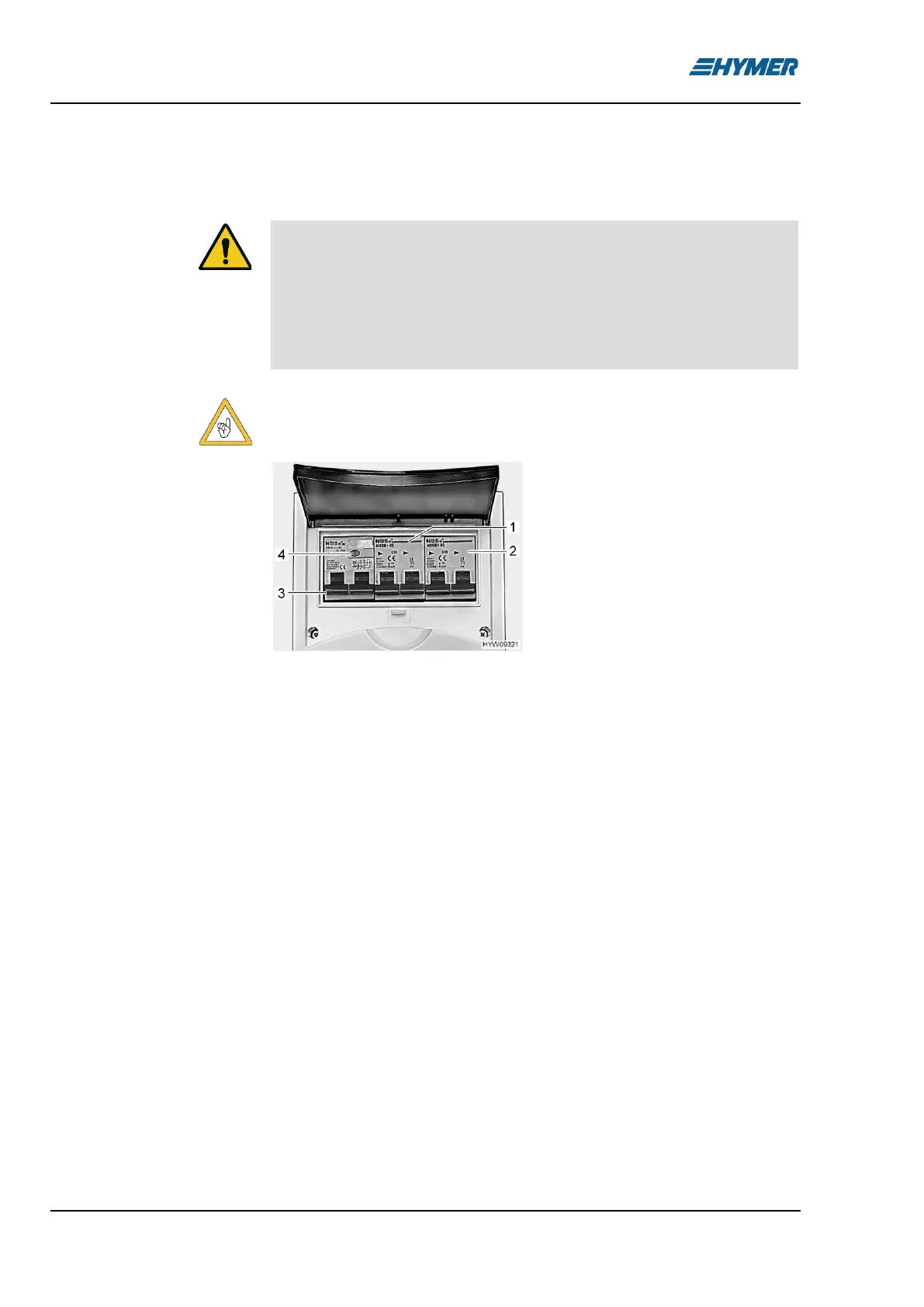 The downstream safety cut-out (10 A) (Fig. 111,1) secures the 230 V sock-