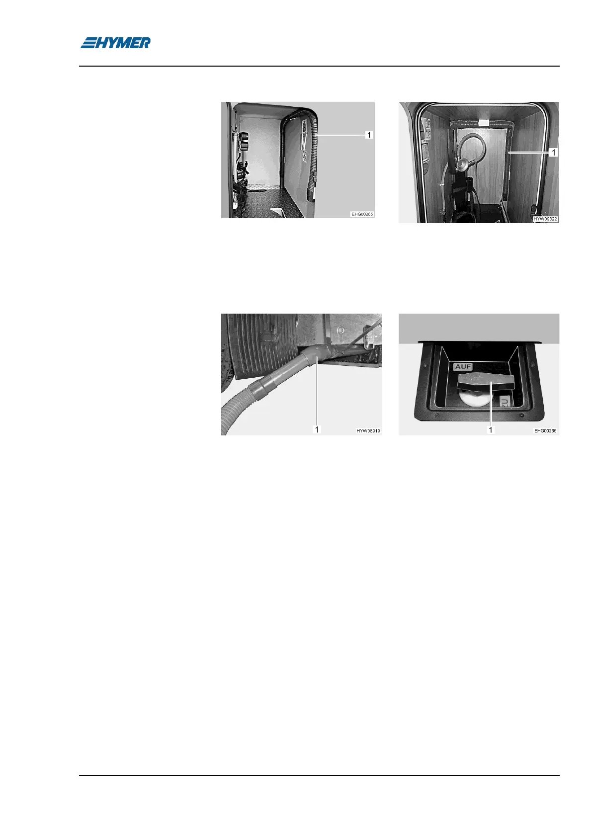 The waste water hose (Fig. 142,1 or Fig. 143,1) is located in the gas bottle