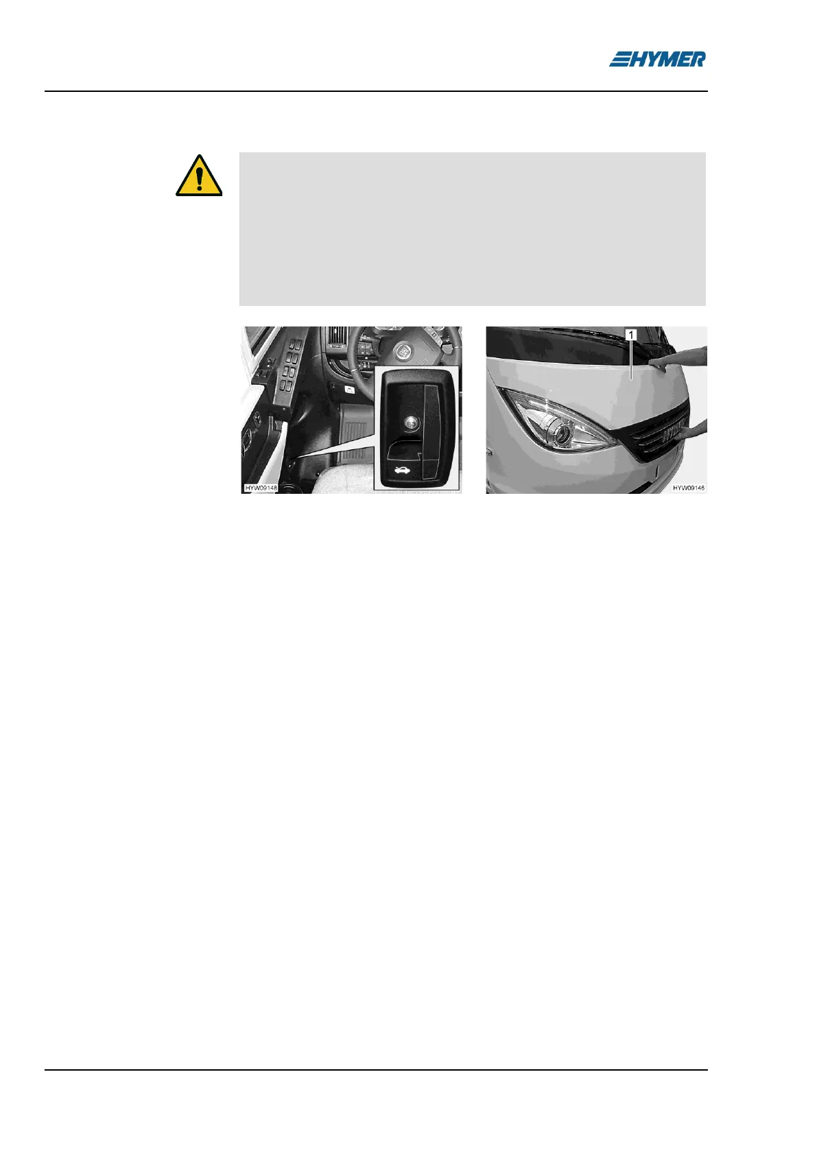 ◼ With both hands, grip the top edge of the bonnet (Fig. 24,1) and reach