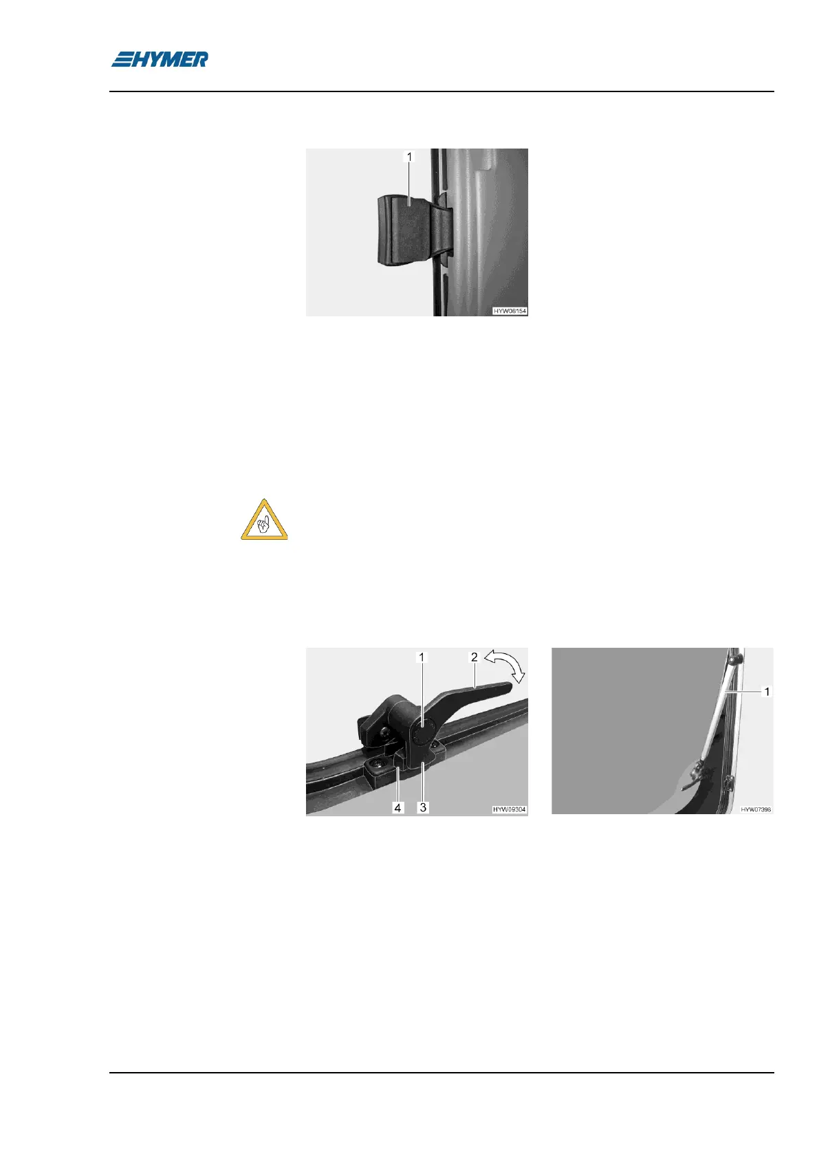 ◼ Open the hinged window to the desired latched position. The automatic