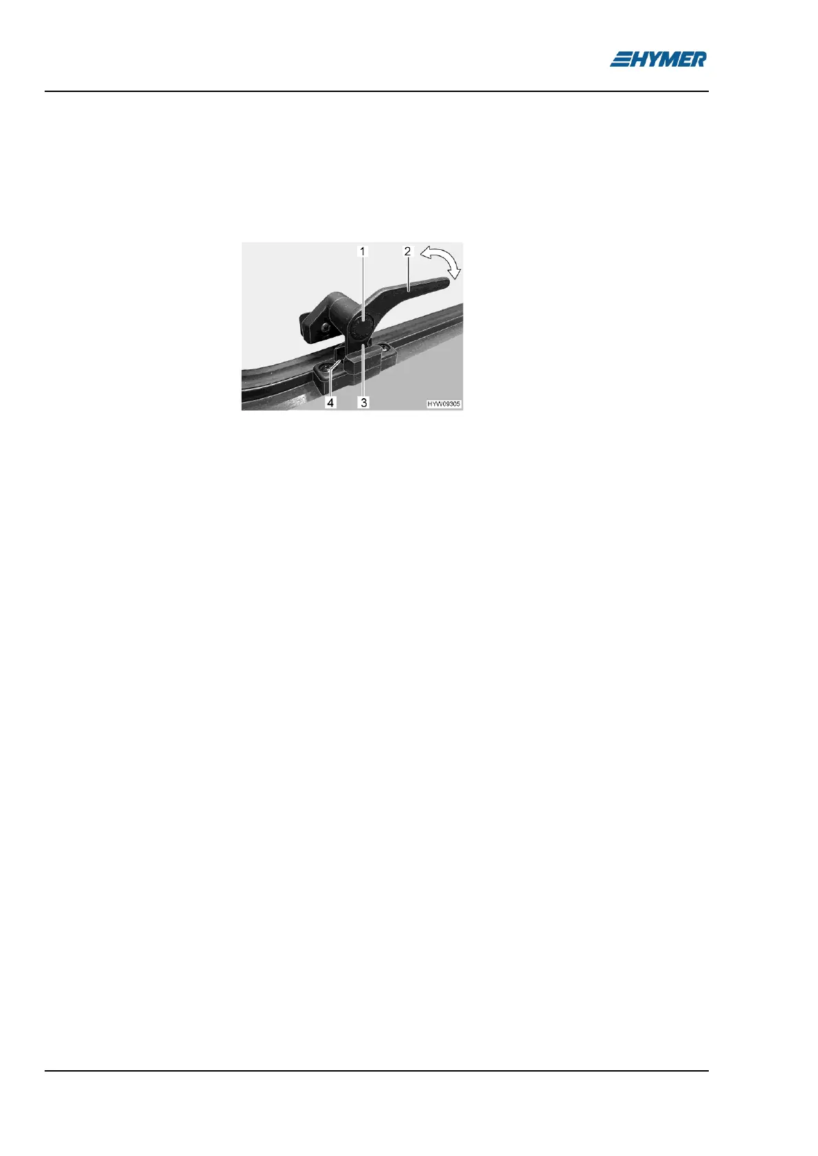 ◼ Turn the catch lever (Fig. 44,2) a quarter turn towards the window