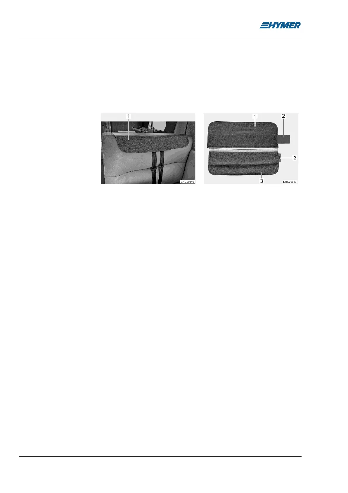 The seat belt cover can be made of leather (Fig. 62,1) or fabric (Fig. 62,3).