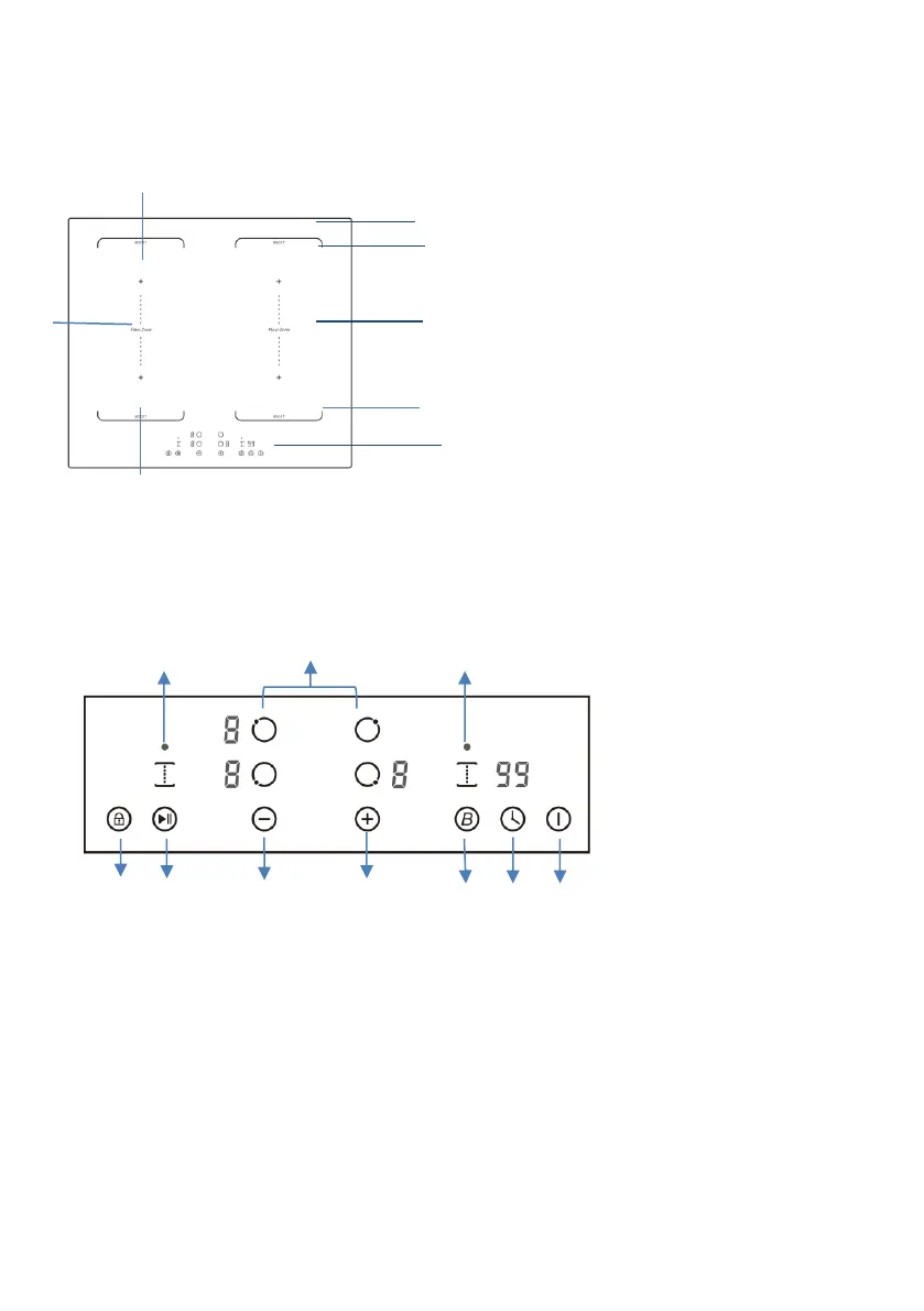 1. Flexi zone control button (right) 2. Cooking Zone selection button
