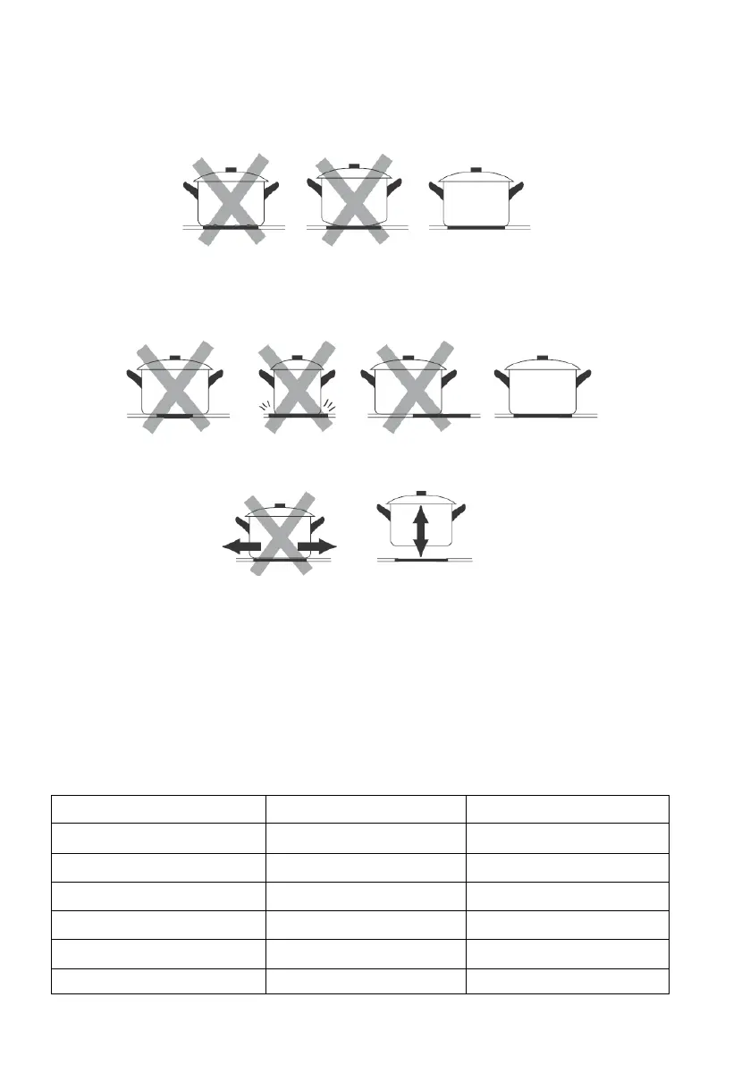 efficiency of your hob, please place the pan in the centre of the cooking zone.