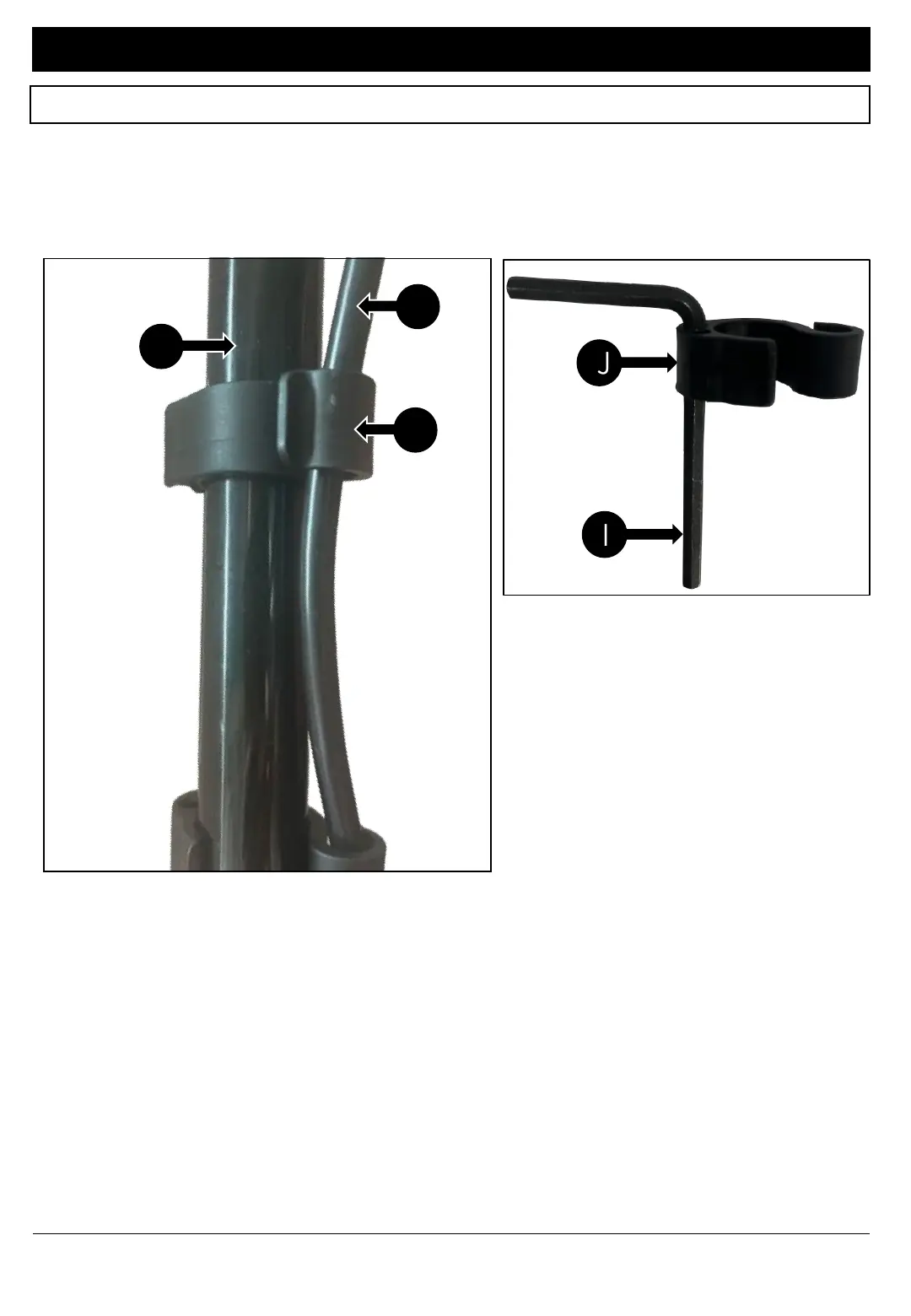 2. You can also store the hex key (I) in the cable clip (J) as shown in the image.