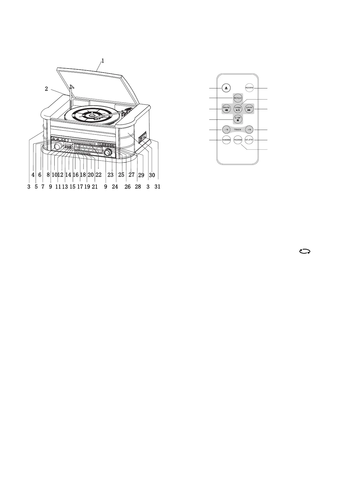 przyciskina urządzeniu. Ten pilot zdalnego sterowania jest używany tylko w trybie CD/MP3 i
