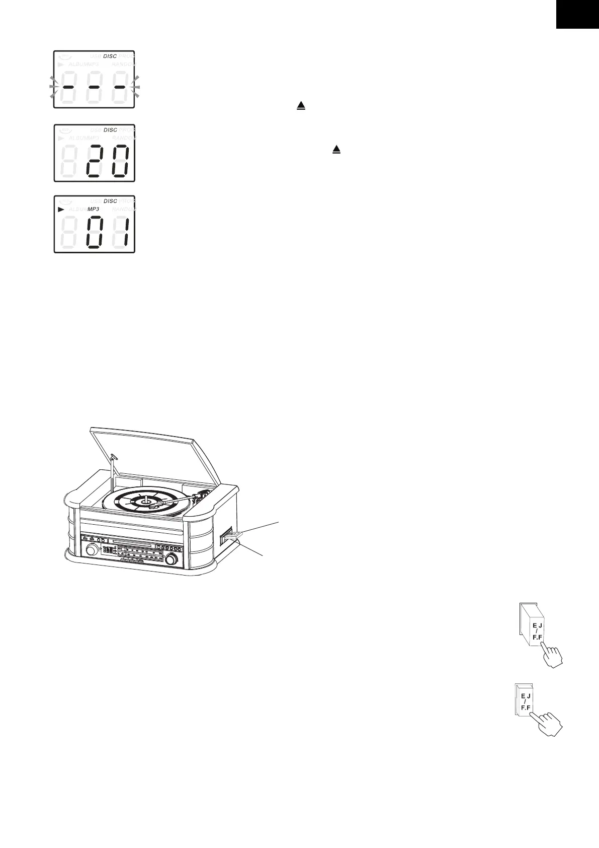1. Schalten Sie die CD / USB-Taste auf CD-Modus um und der Display