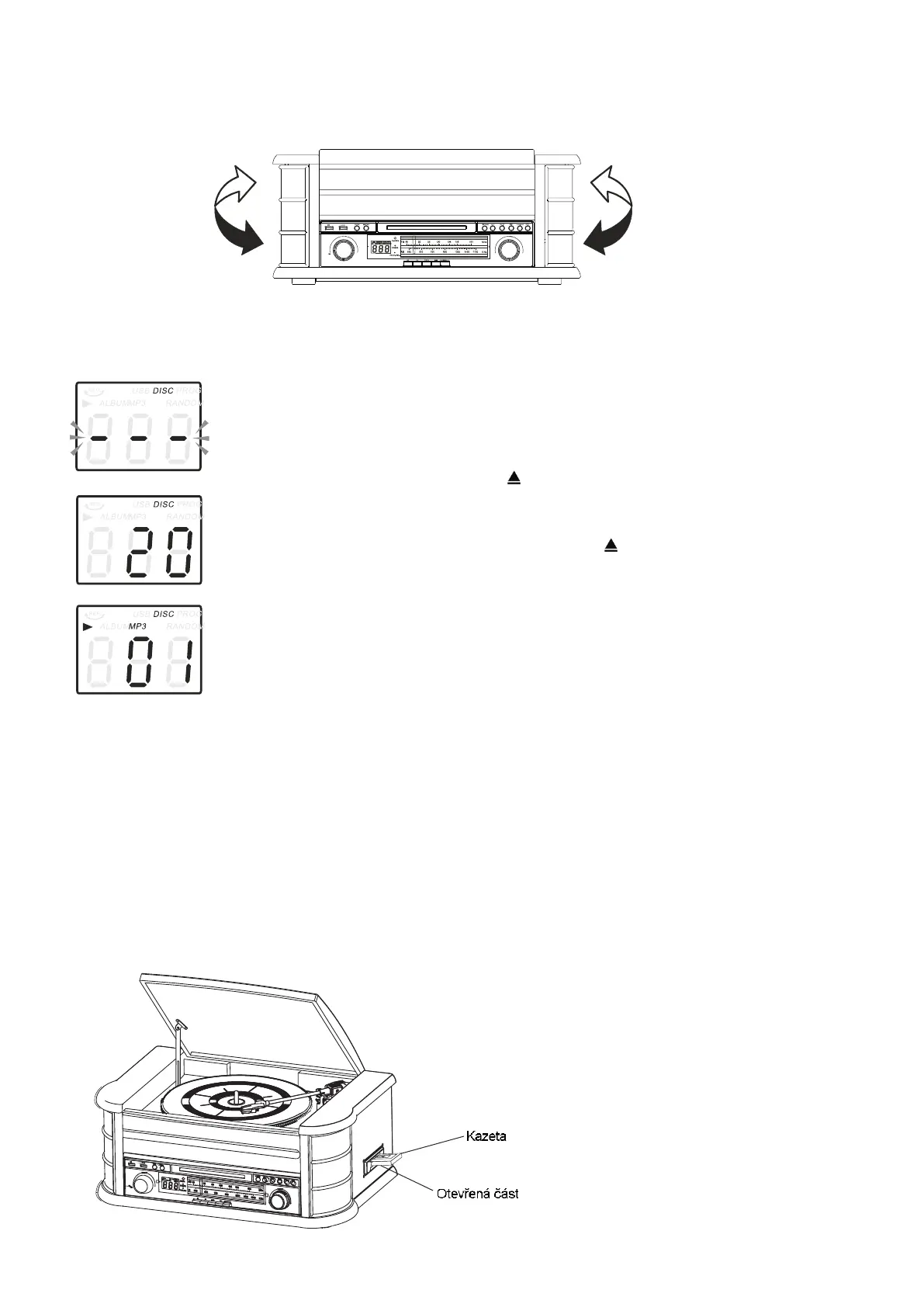 se zobrazí „- - -“ a ikona „DISC“. Přístroj může přehrávat CD, CD-R