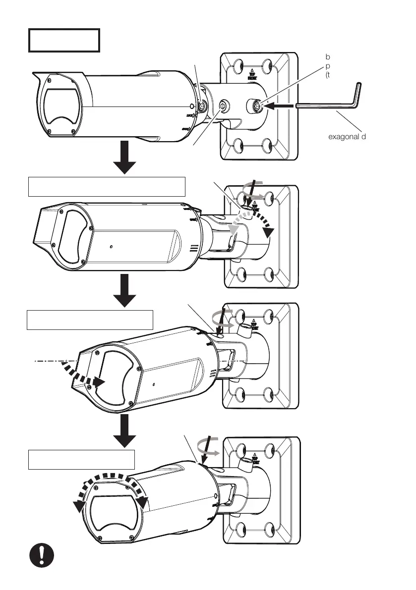 • Después de ajustar la orientación de la cámara, apriete temporalmente los tornillos de fijación.