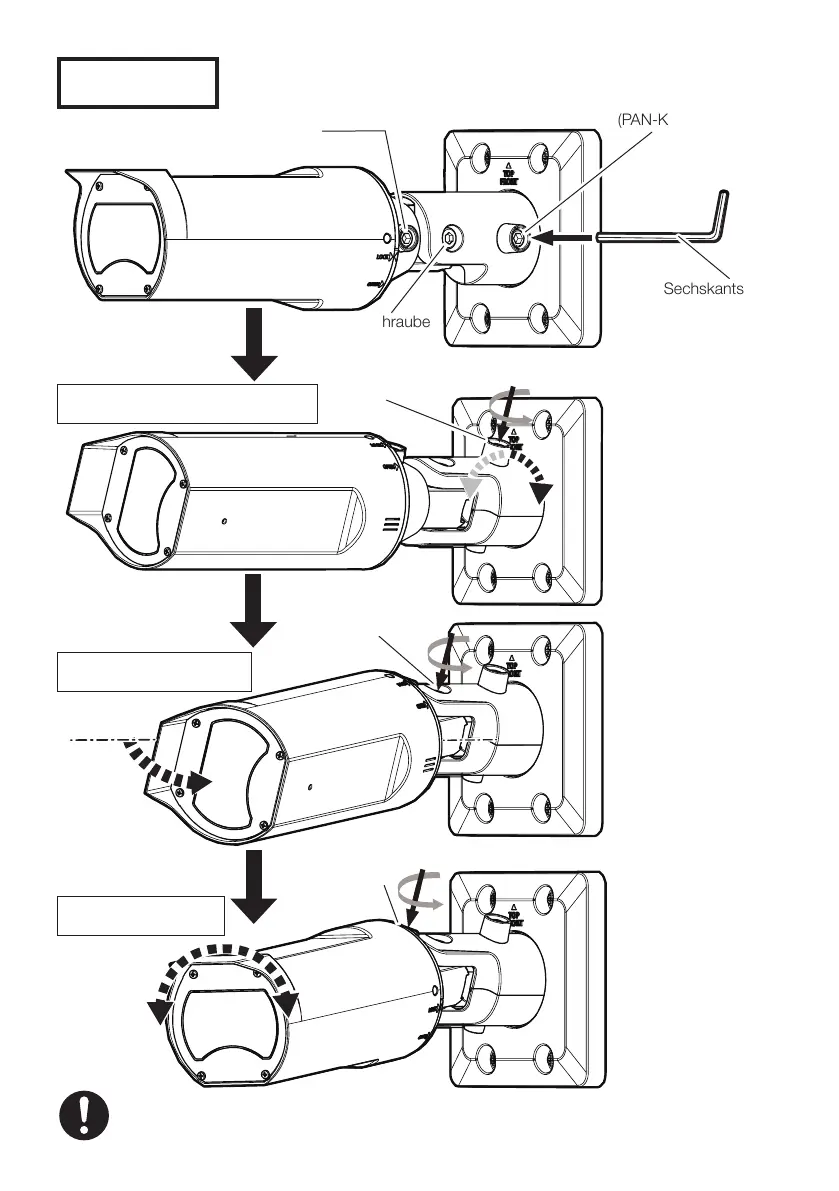 • Verstellen Sie den PAN Winkel nicht um mehr als ±180°. Dadurch könnten Kabel reißen.