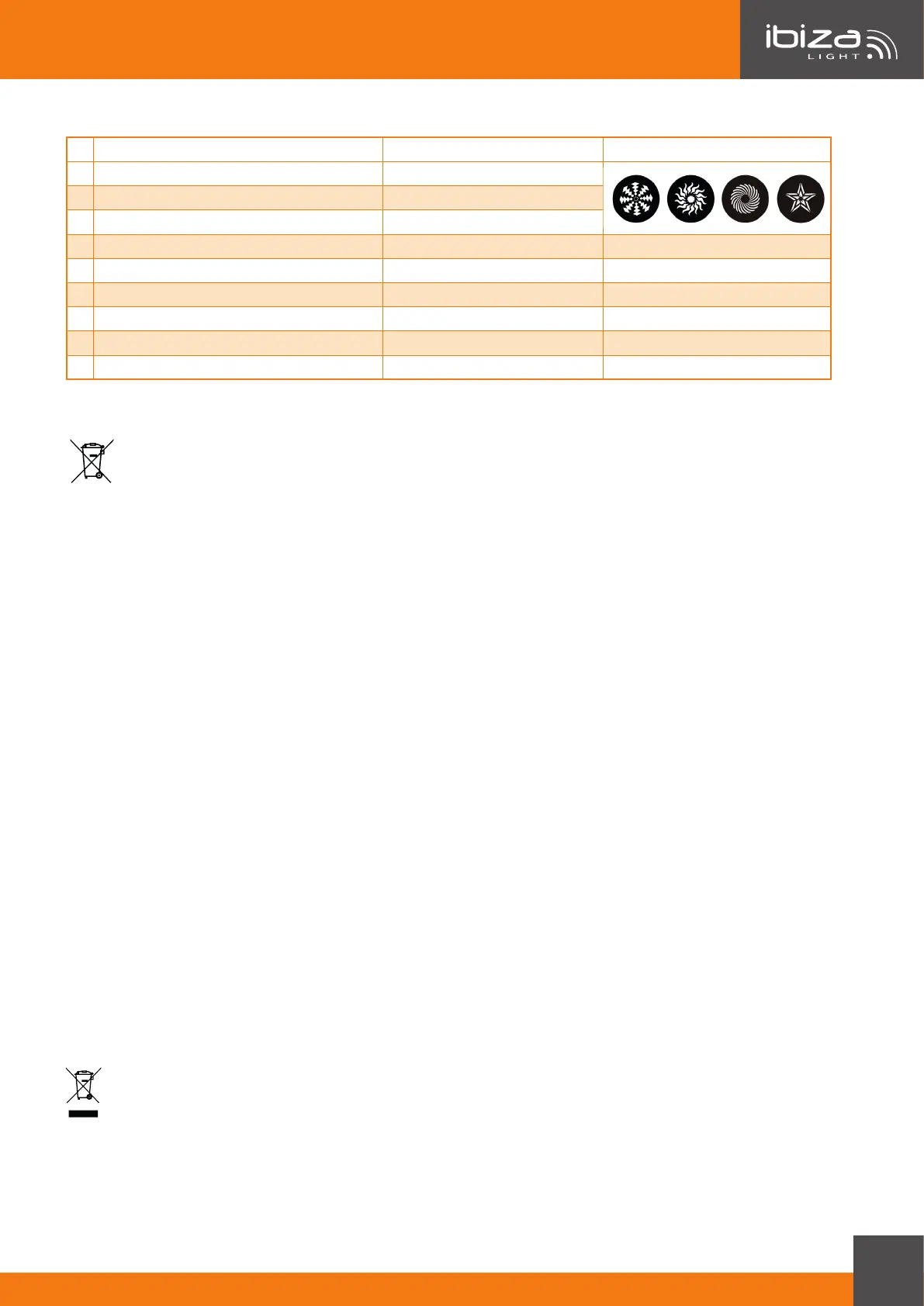 Fuentes luminosas ............................................................................................. Gobo: 4 LED RGBW de 3W