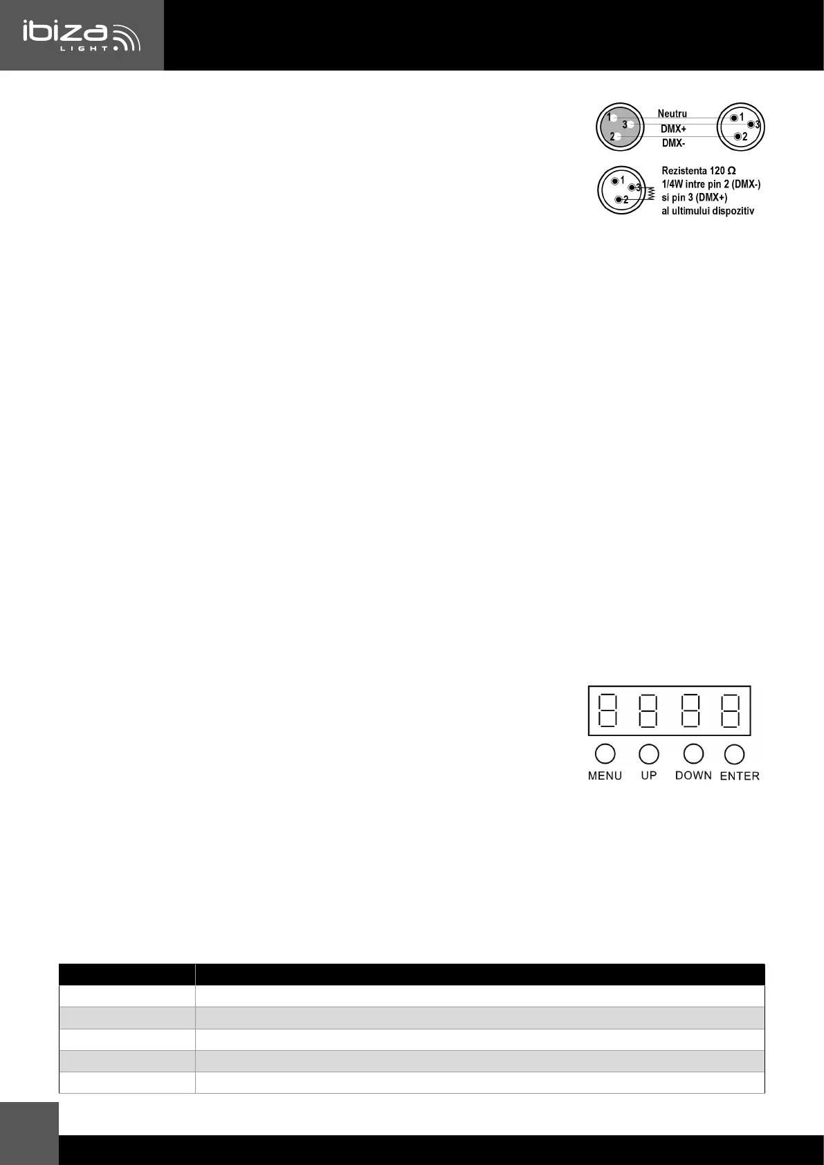 1. Conectați partea conectorului (tată) cu 3 pini a cablului DMX la conectorul cu 3 pini de ieșire (mamă) al