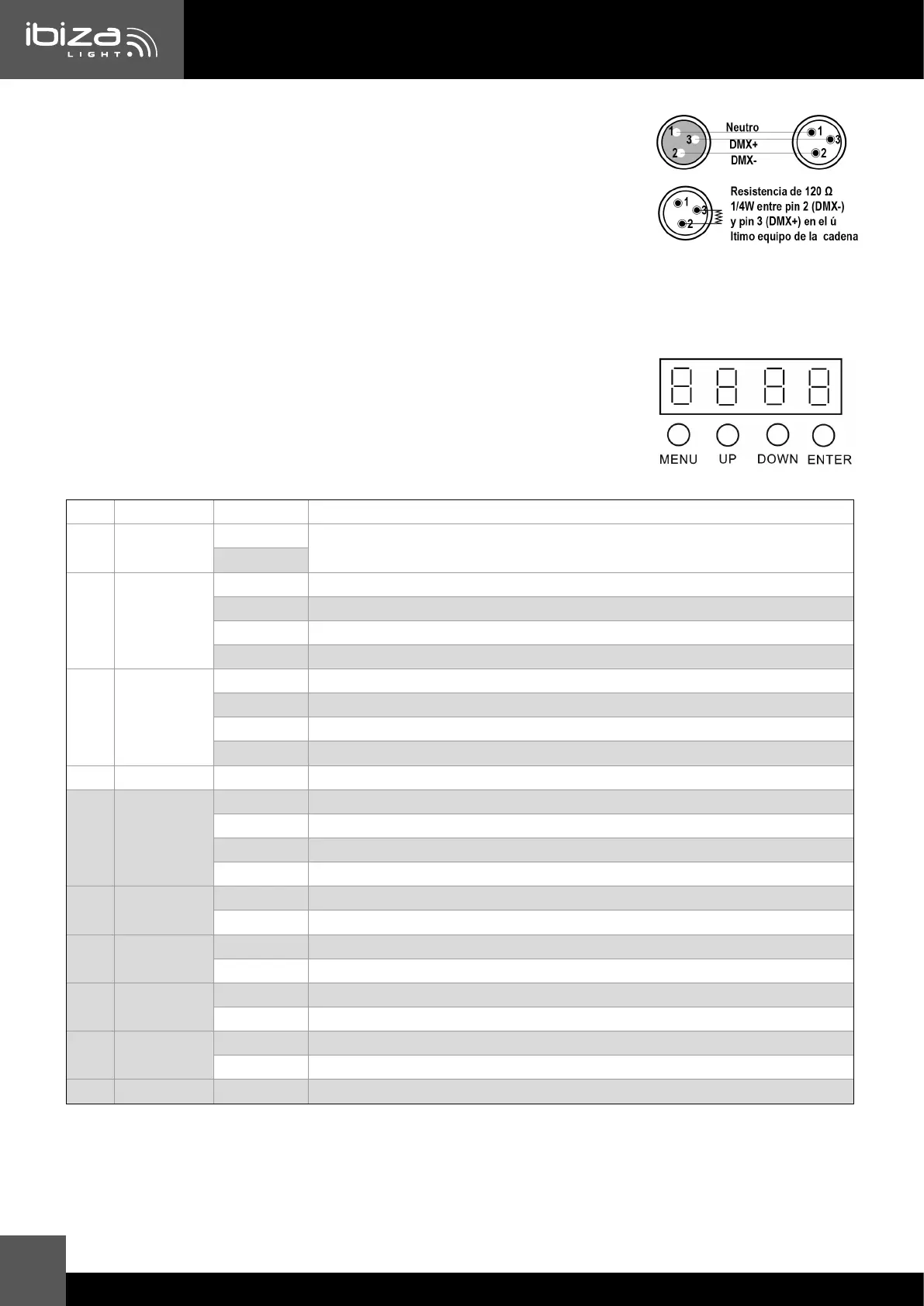 1 Addr 001-512 Dirección DMX